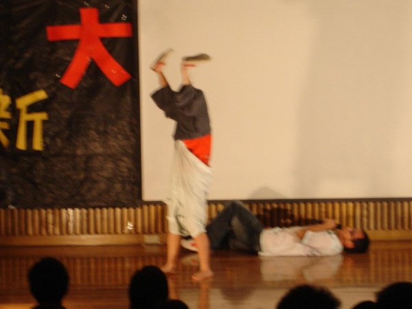 緊接著的,就是熱血的系隊介紹啦,印象最深刻的就是系籃的灌籃高手影片了,一開始我還覺得很爛,以為他只是把整個灌籃高手片頭動畫播完就結束了呢!沒想到最後竟然來個真人灌籃高手,聽到台下學弟妹們的喝彩,就已經完完全全的說明了這影片對大家的影響力了;還有像是系壘學長們的團結力,就像是一群生死至交一樣有著共同的目標,讓大家一起去奮鬥,這種感覺不用我們說,學弟妹們也很想體會看看吧!
